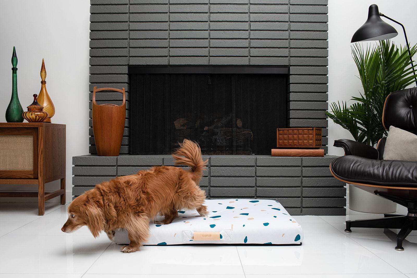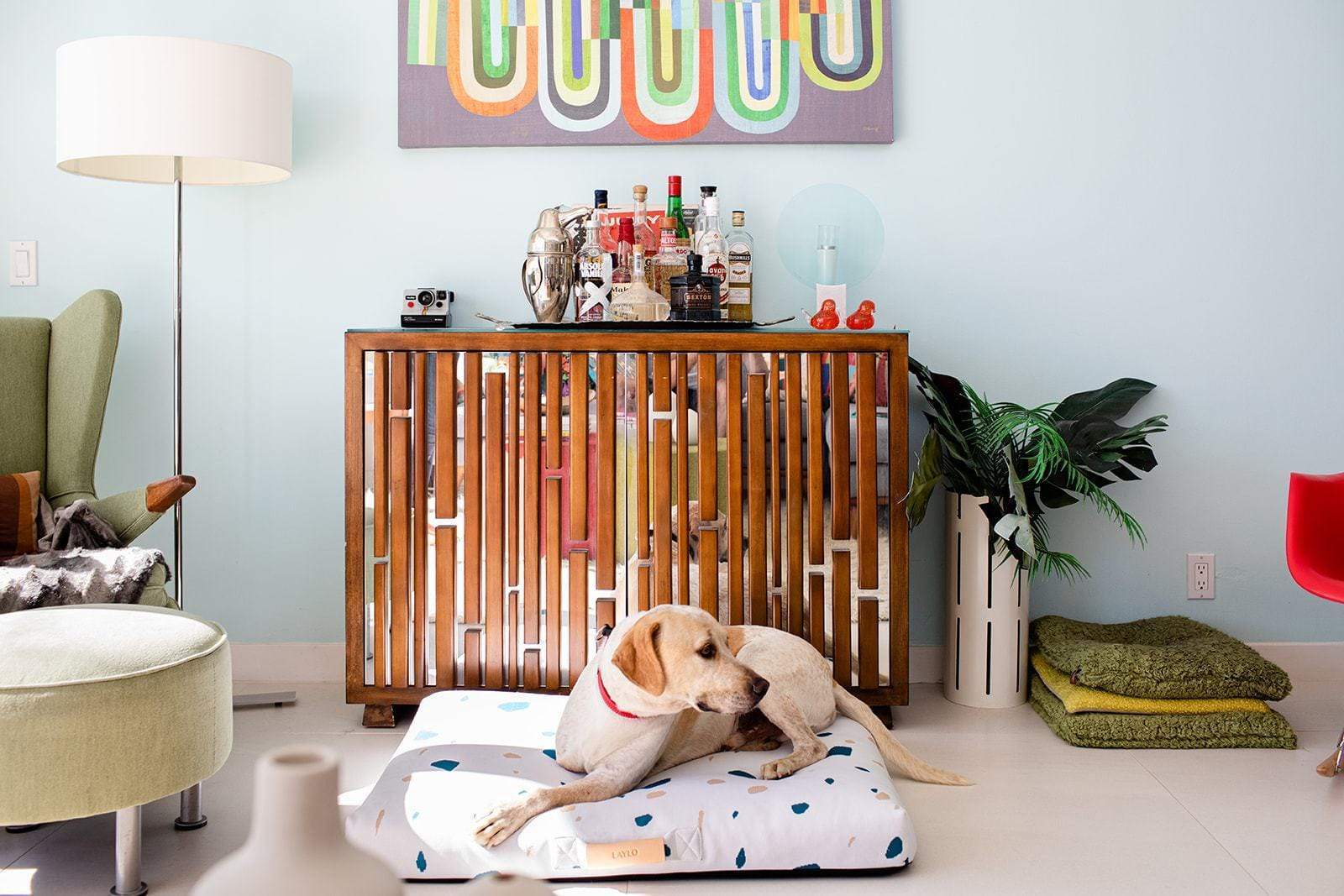 LAY LO's stylish dog beds blend in with any decor while giving your pets the orthopedic comfort they need for a good night's rest. Each mid century modern dog bed features a knitted removable cover that is machine washable, durable, and dig proof. Our dog beds also feature a non-slip bottom, portable handle and accident-resistant orthopedic insert. Made in the U.S (Brooklyn, N.Y), limited edition collections are released quarterly, giving you the ability to swap your dog bed cover as often as you'd like.